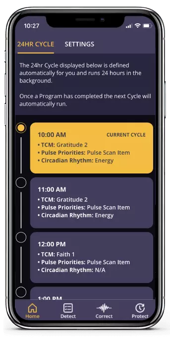 Experience personalized bioenergetic energy management without the need for any personal intervention, always on, running 24/7, supporting the human body-field across a day-night cycle